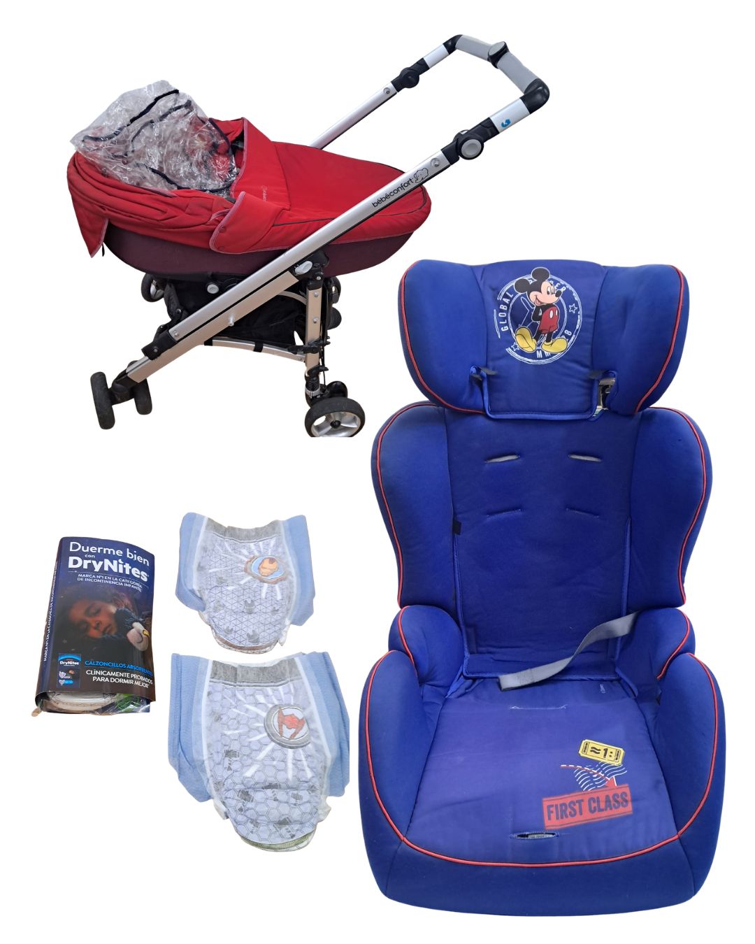 COCHE DE BEBE ROJO Y OTRAS COSAS